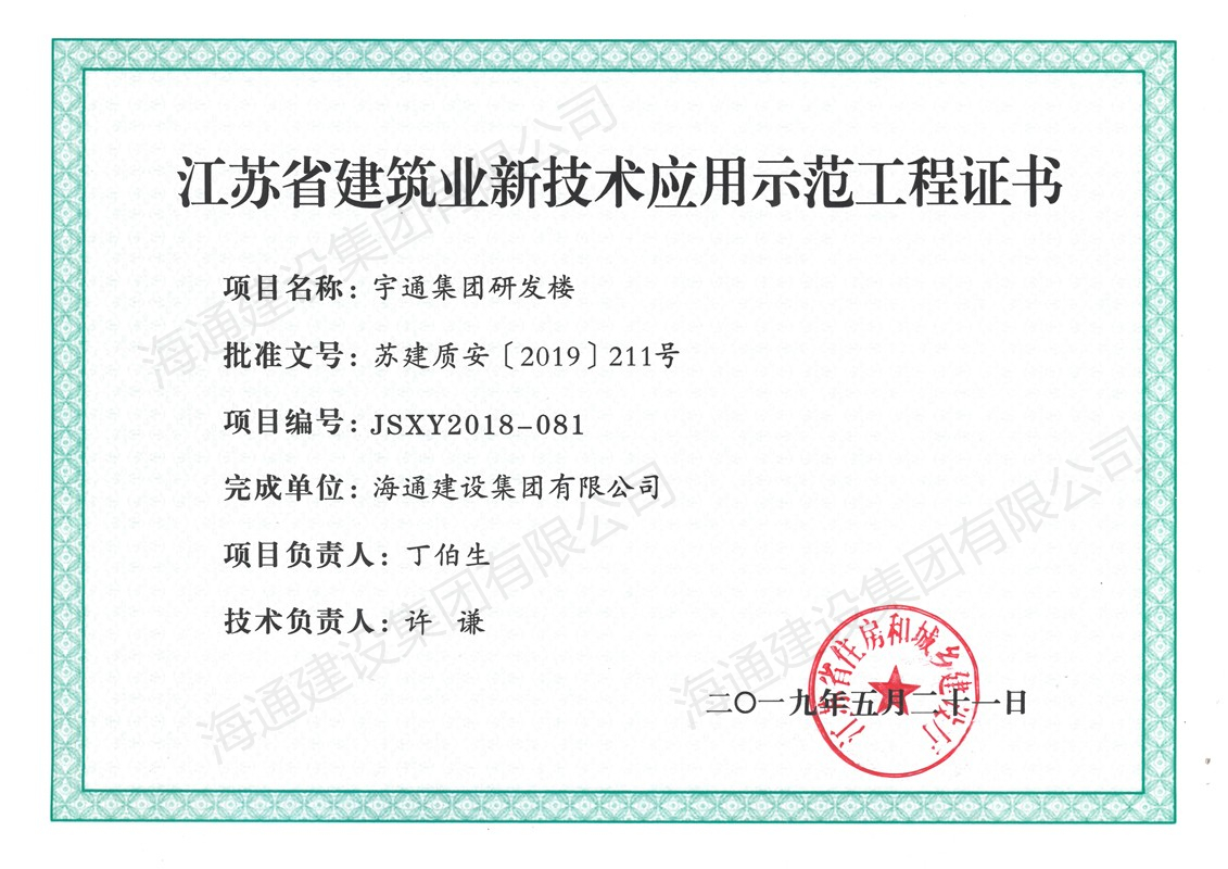 江蘇省建筑業新技術應用示范工程2019宇通集團研發樓